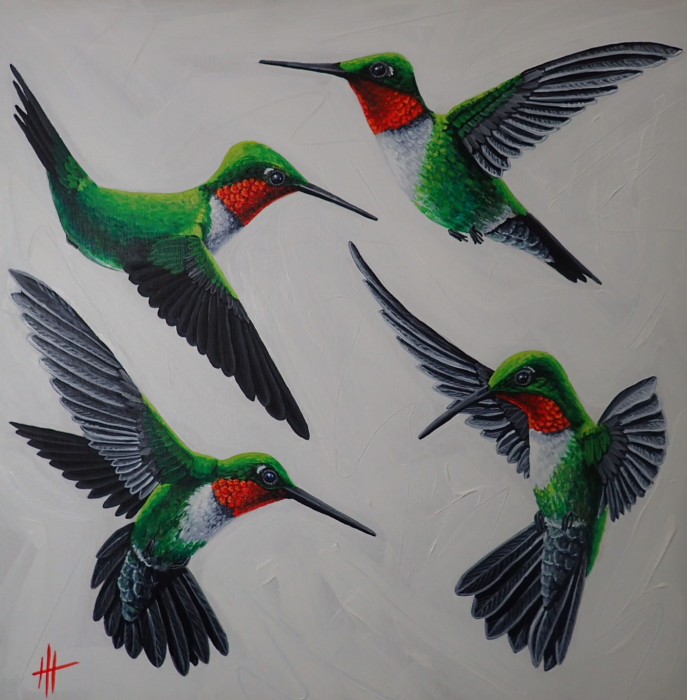 The themes of this show were born within Heidi’s life experiences and passions. An admirer of feathered creatures, Heidi has long-standing captivation for the beauty, uniqueness, and freedom represented by birds. This, in combination with holding a need to experience life with a dash of humor, has formed the inspiration for this show.