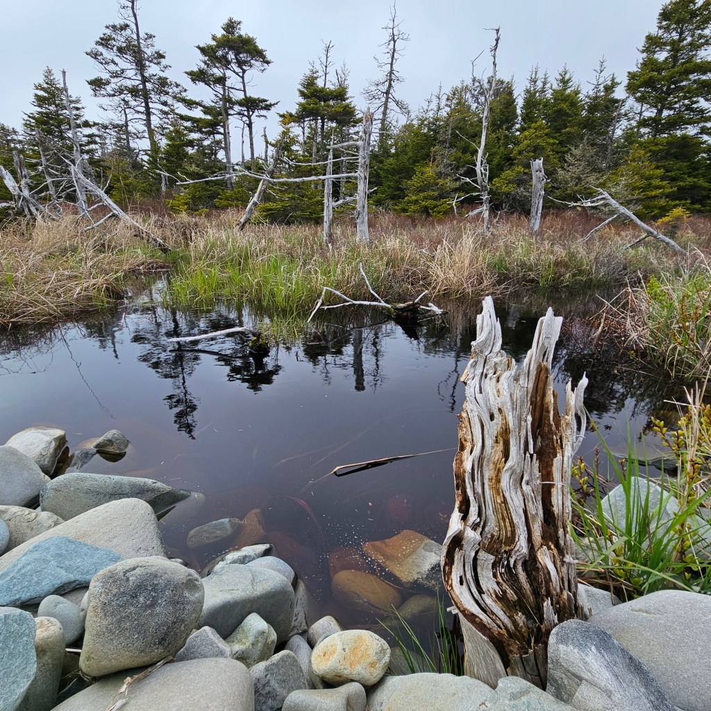 The routines of this space set in quickly; awake, walk, watch, paint and repeat. The days were not measured by dates and times but rather with ritual. Daily walks along the woodland, bog, and shoreline trails. Where I would find a place to sit and watch. Watching nature display her mood. From the fog draping the land with veils of pearl and smolder. Lingering as to purposefully hide her most prized treasures and secrets. Only to be revealed to those who look hard and deep enough through the curtain to discover them. The blue grey fog highlighted the depth of colors in the boggy barrens like burnt sienna, deep magenta, and golden ochre against the evergreen landscape of haunting greens, dark browns, and woody grey. Whereas on the other hand, bright sunshine accompanied energizing greens and invigorating blues in a grand show of ocean vitality and life in springtime. Including the never-ending array of sunset palettes of pastel purples and pink to fiery orange and cadmium yellow. I found myself not chasing the bright environmental conditions but found myself being pulled into the distinct allure that each presentation uniquely displayed. Being filled with fascination, curiosity, and appreciation.