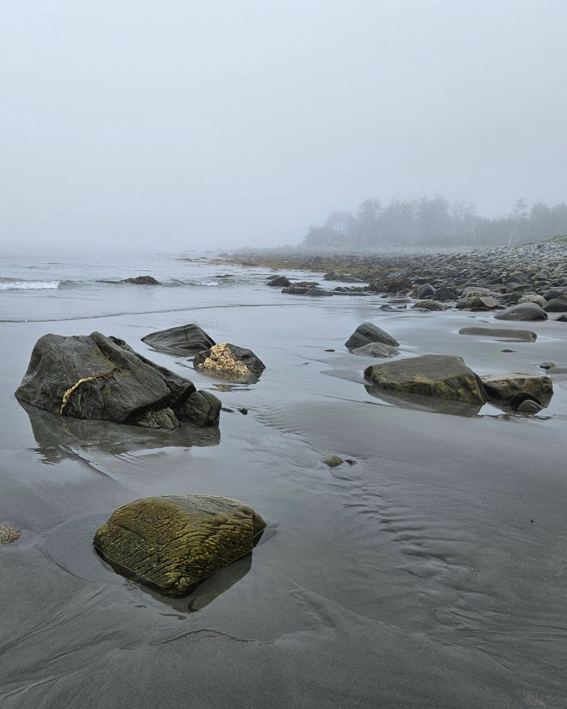 The moments of “watching” where about the Art of Noticing. Noticing the lichen on the trees, the dance in the branches, the repetition of waves, the fluttering of wings, the hint of salt in the air, the light and shadow of the dense forest, and the life that lives behind the silence. The practice of mindfulness and grounding oneself the to land. This involved leaving distraction, expectations, and assumptions in a different place; far away from the moment. Allowing space to experience the sensations of this land externally and internally. In turn, giving raw opportunity to be inspired and ignited by this place.