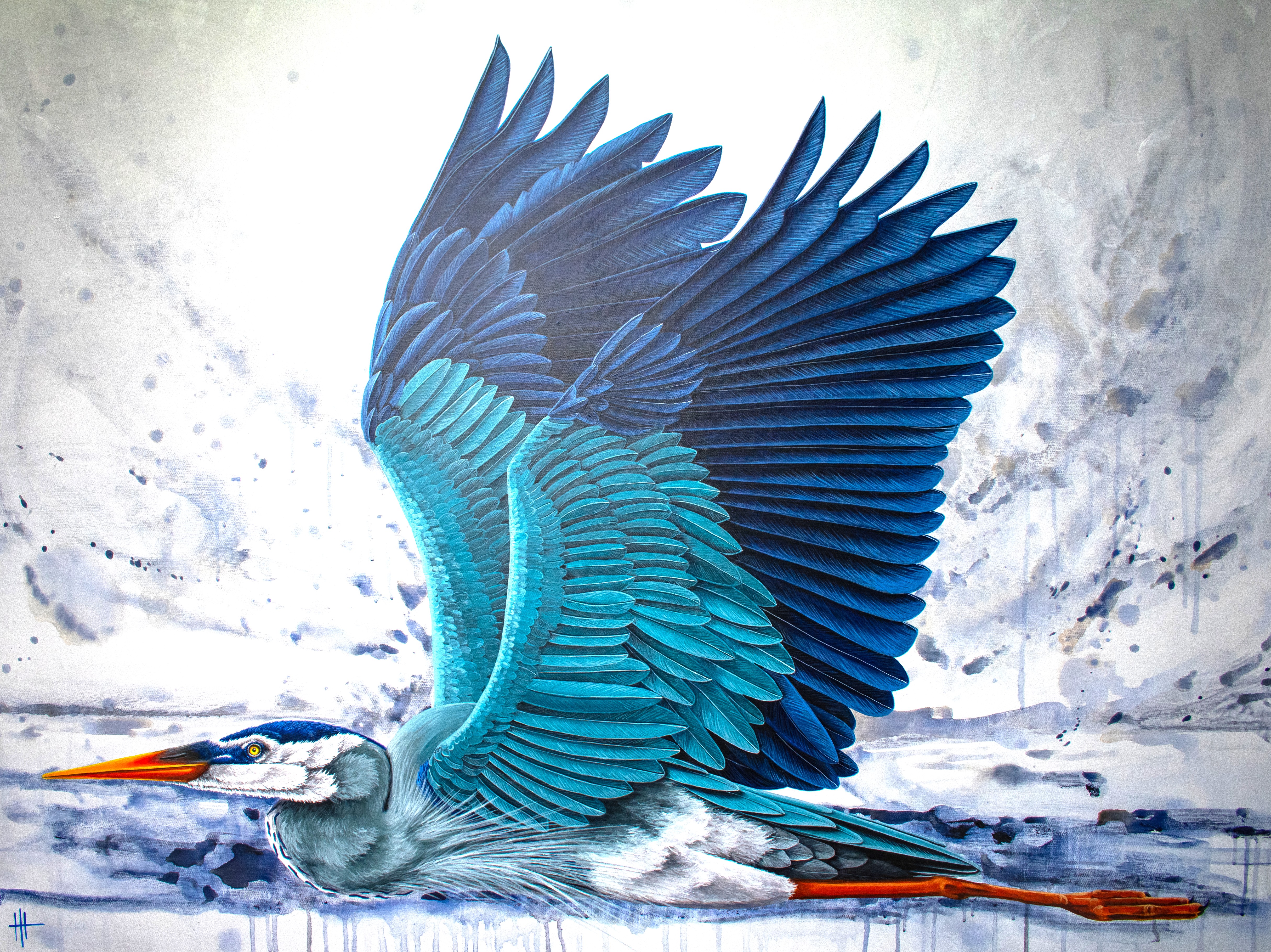 I took inspiration from this land’s natural features, colors, lighting, and of course, birds. Every walk included watching the beautiful diversity of birds who are either passing through or call this place home. I received countless moments of interaction with a variety of birds. Too many to list them all. These glimpses and interactions are what created the main theme for my depictions during the residency program. To capture the existence and character of the birds within the habitat and to demonstrate the feeling that their presence gives to the environment here. All the bird paintings completed during the residency, were of birds that I was able to observe during my time here. My only regret, not having enough time to paint them all.
